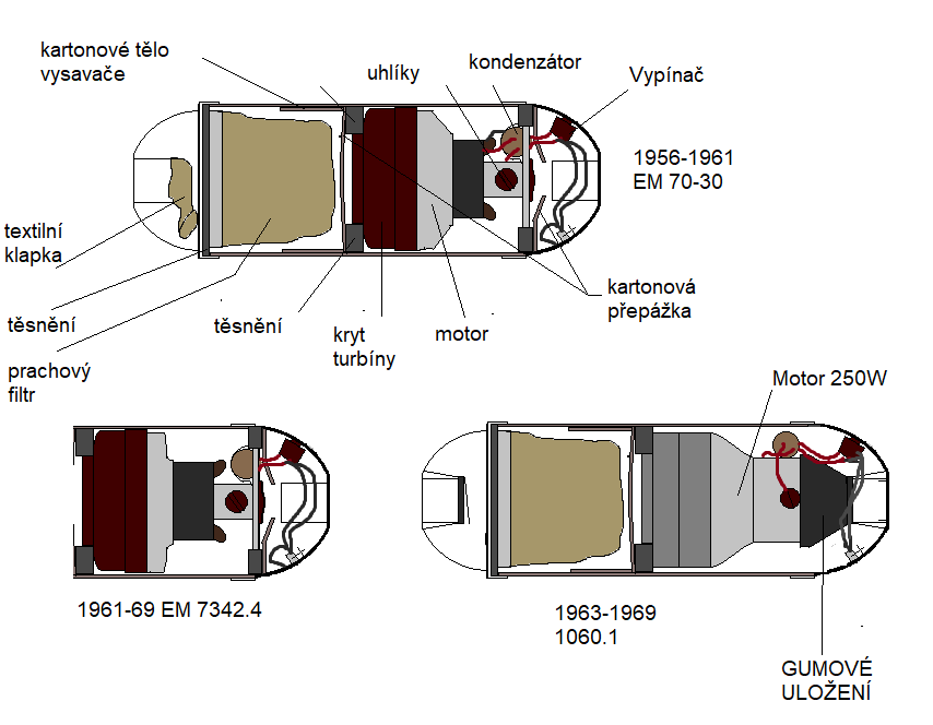 tělo přístroje je kombinací kartonu,kovu,hliníku a barevného potahu